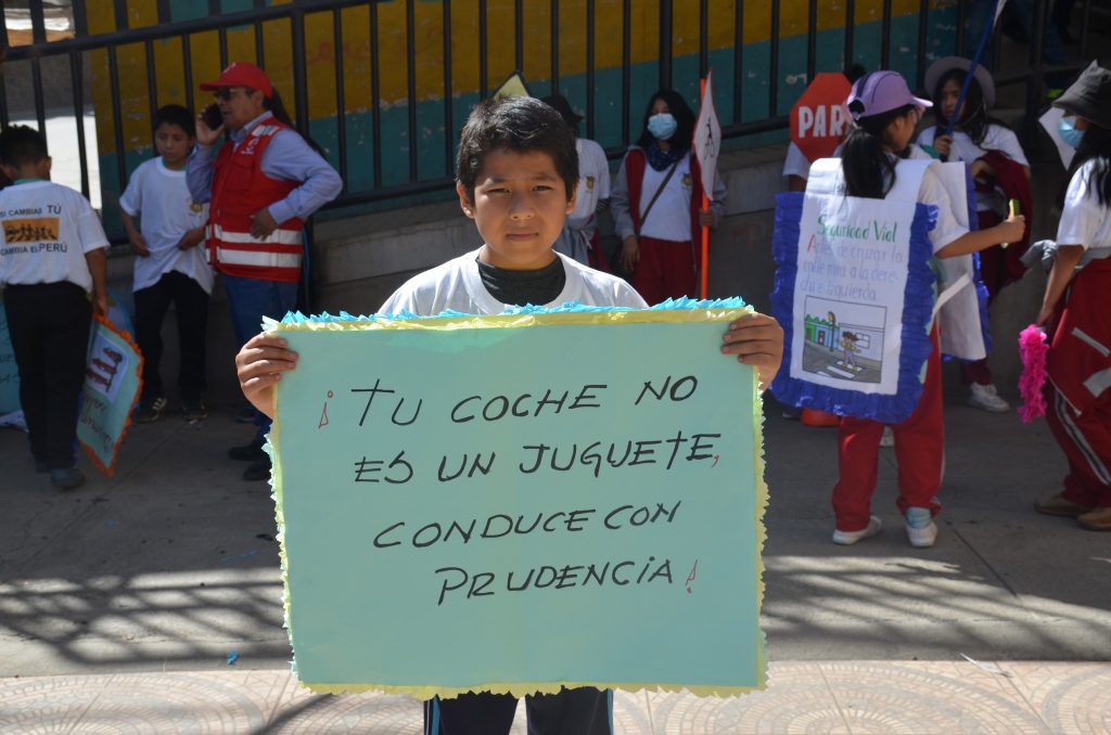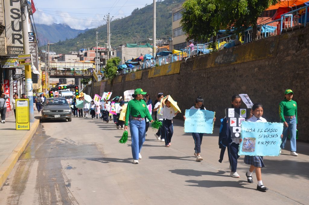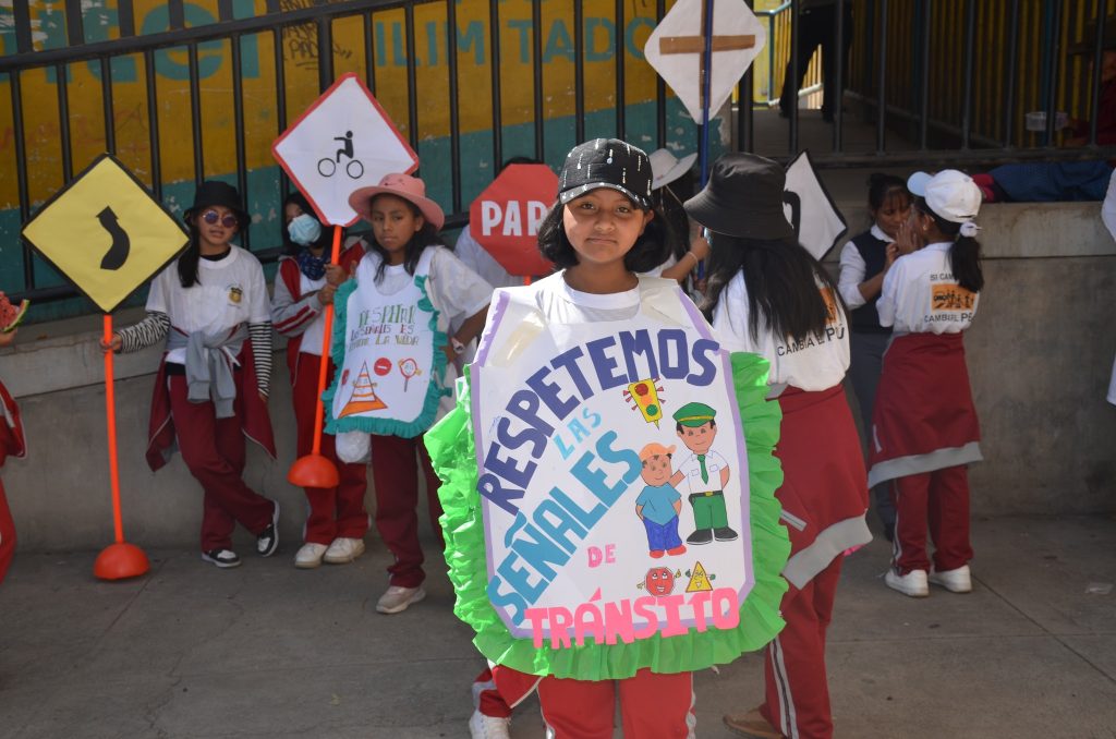 Cientos de escolares de diferentes instituciones educativas de nivel primario participaron de esta importante actividad, portando pancartas con lemas alusivos a la educación y seguridad vial, el propósito fundamental es concientizar a los conductores de transporte público y privado, ya que en los meses de marzo y abril se incrementaron los accidentes de tránsito en las vías de comunicación de toda la región.