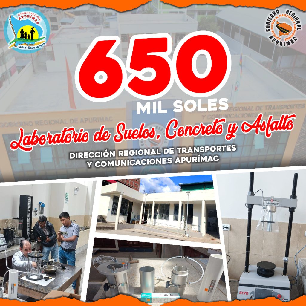 GORE Apurímac destino más de 650 mil soles en equipamiento de laboratorio de suelos, concreto y asfalto de la DRTC – AP.