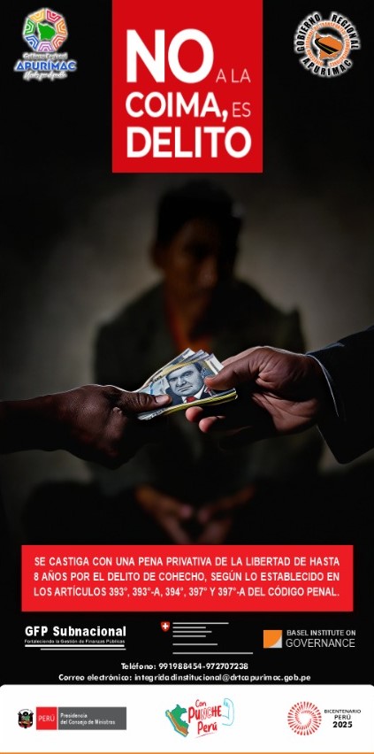 La campaña «Alto a la Corrupción» continúa en las entidades públicas del Estado peruano. En esta línea, el Director Regional de Transportes y Comunicaciones de Apurímac, Ing. Jorge Antonio Ñaccha Lucana, en coordinación con su equipo de funcionarios y la Subdirección de Recursos Humanos, ha implementado la Política de Integridad Institucional y Lucha contra la Corrupción.