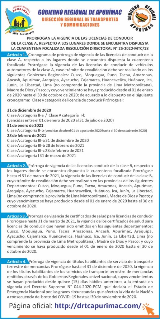 No dejarse sorprender por falsas publicaciones de trámite de licencia de conducir – DRTC Apurímac