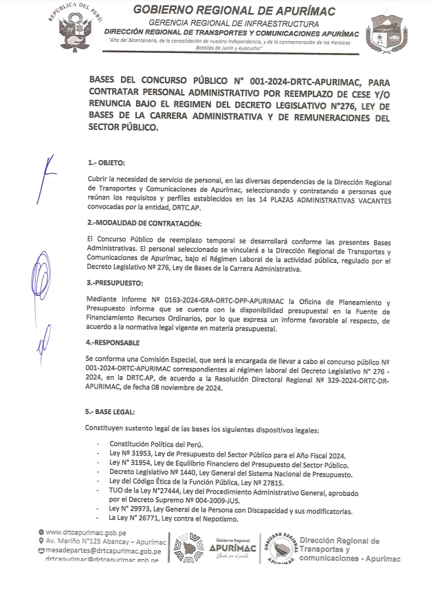 BASES DEL CONCURSO PÚBLICO N° 001-2024-DRTC-APURÍMAC