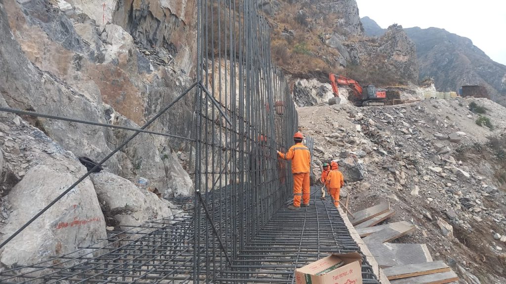 Con trabajos de armado de acero en zapatas se realiza construcción de muro de contención en vía LLaullipata – Tipin.