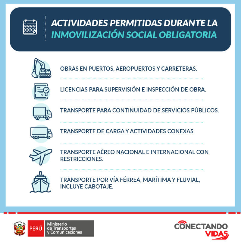 Conoce al detalle qué actividades vinculadas al sector Transportes y Comunicaciones se podrán desarrollar durante la inmovilización social obligatoria en zonas consideradas de riesgo extremo.
