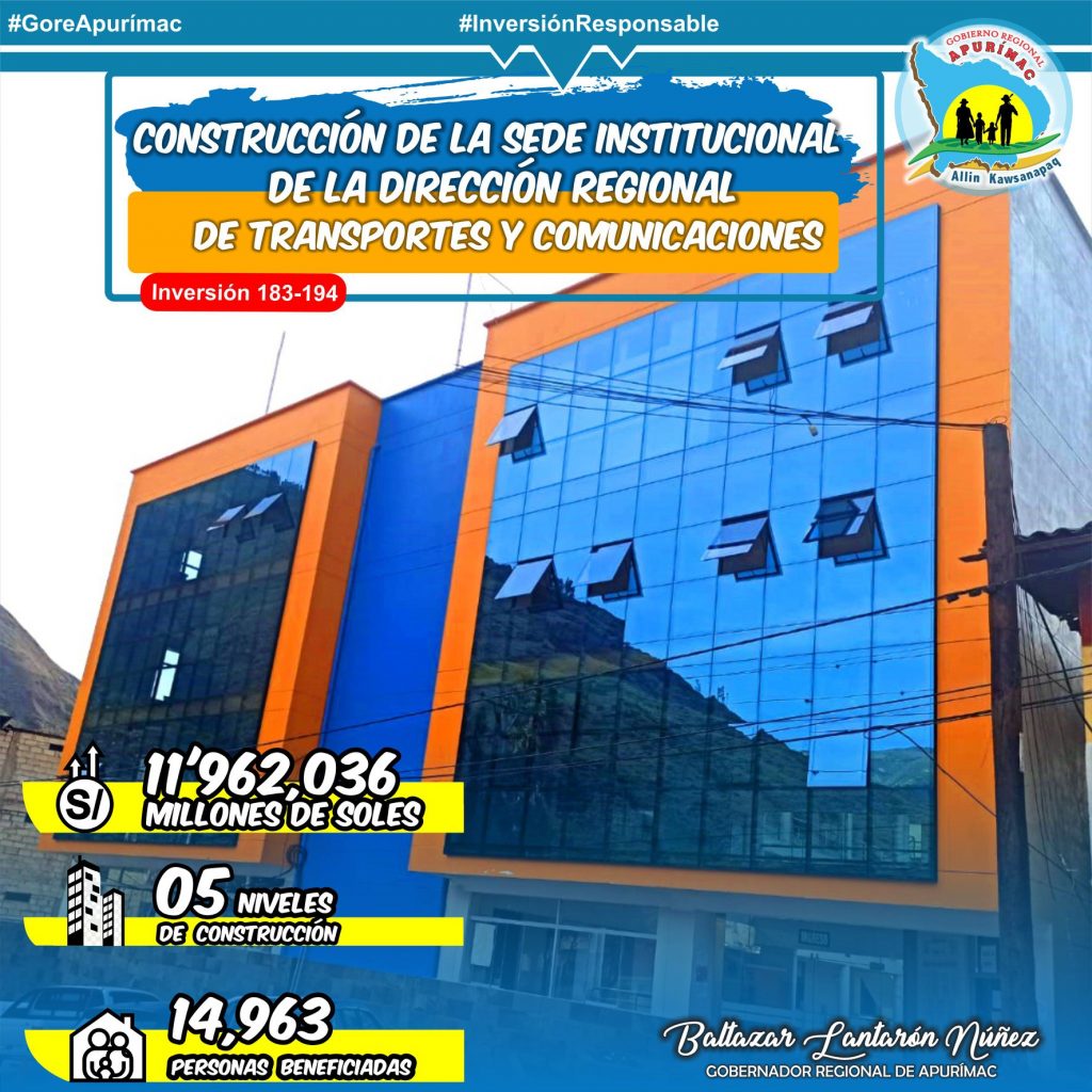 Después de más de 60 años, se construye la moderna infraestructura de la sede institucional de la Dirección Regional de Transportes y Comunicaciones