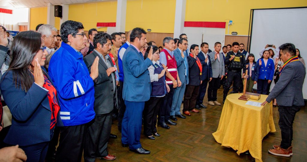 En acto protocolar presidido por el Gobernador Regional de Apurímac, Percy Godoy Medina, juramentaron los nuevos integrantes de la Plataforma Regional de Defensa Civil y Grupo de Trabajo de la Gestión de Riesgo de Desastres – 2023 – 2026, dando cumplimiento de la Ley N° 29664 del Sistema de Gestión de Riesgos de Desastres, de acuerdo a la Resolución Ejecutiva Regional Nº- 78-2019-GR-APURIMAC-GR. Donde estuvo presente el Director Regional de Transportes, Ing. Antonio Ibañez Escalante, junto a los demás funcionarios del gobierno regional y demás instituciones públicas.