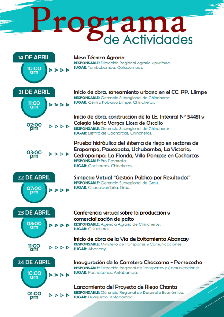 El Gobierno Regional de Apurímac a través de la Dirección Regional de Transportes y Comunicaciones el día 24 de abril inaugurara la vía Chaccama – Pomacocha – Distrito de Pachaconas.