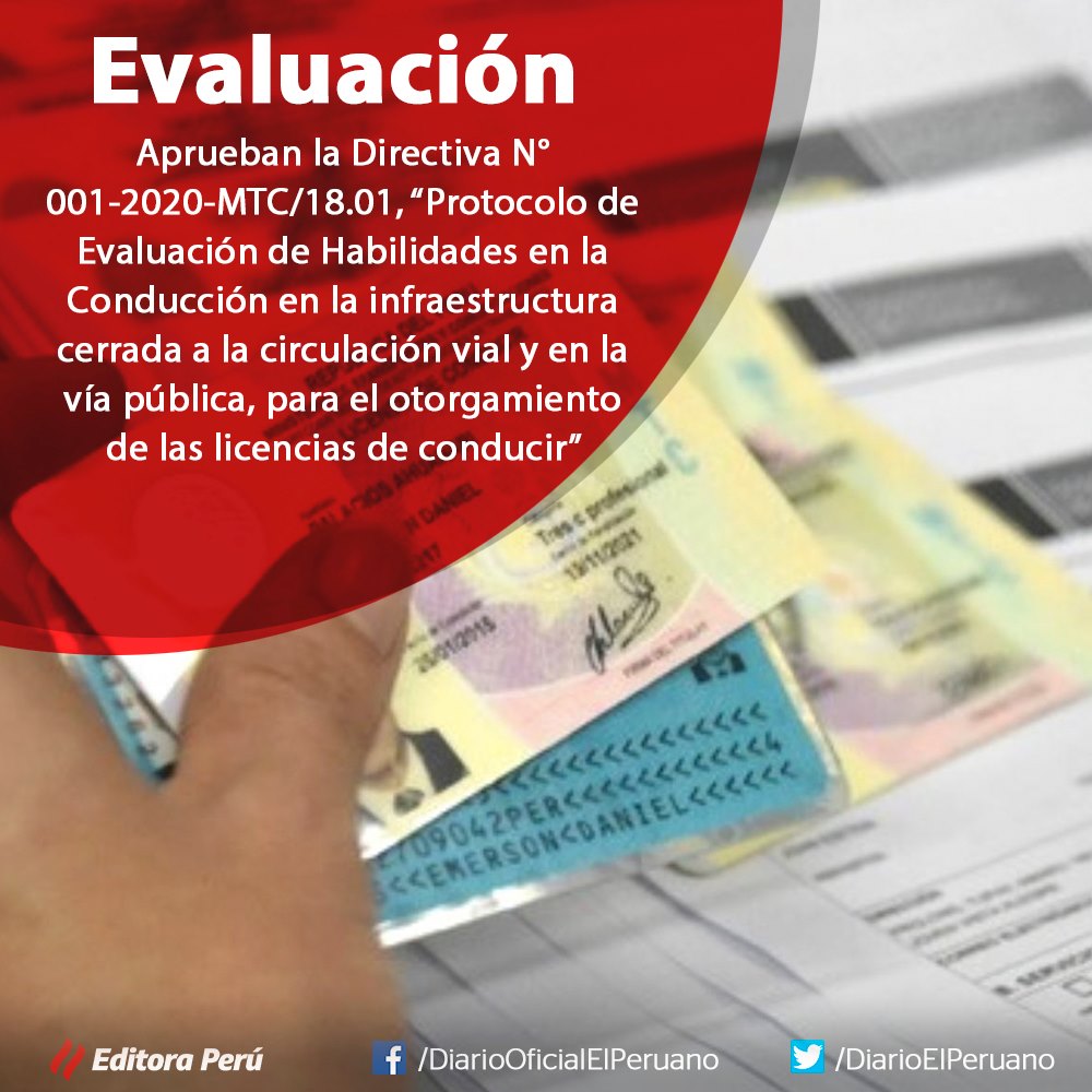 El Ministerio de Transportes y Comunicaciones del Perú aprobó el Protocolo de Evaluación de Habilidades en la Conducción en la infraestructura cerrada a la circulación vial y en la vía pública, para el otorgamiento de las licencias de conducir, que permitirá que la referida evaluación, sea realizada de manera estandarizada a nivel nacional. https://bit.ly/32ZGlrH
