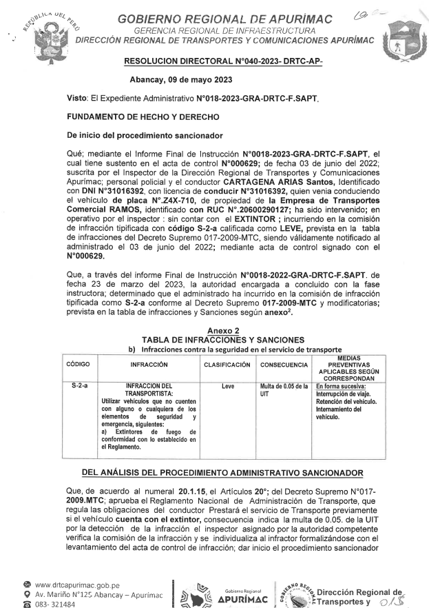 RESOLUCIÓN DIRECTORAL N°040-2023-DRTC-AP